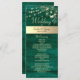 Guie seus convidados através de seu dia especial com este elegante programa de casamento boho, com um fundo de madeira rústico, sotaques verdes esmeraldas ricos, rendas florais de ouro vintage e luzes de cordas brilhantes. Este design combina sofisticação moderna com charme rústico, fazer perfeito para o outono, inverno ou casamentos ao ar livre. Personalize com os detalhes da sua cerimônia para criar um na moda e uma lembrança memorável para os seus convidados.