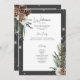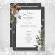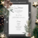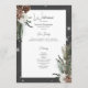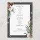 Este design do programa de casamento apresenta um pinho verde rústico e um buquê pinecone em um fundo preto de carvão macio com flores brancas. É acentuado com uma camada branca de brilho para ilustrar a magia das belas férias de inverno. Perfeito para um Natal ou casamento no inverno. Criado pela imprensa simplesmente de farmácia.