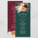 Este programa de casamento floral rústico de dois lados apresenta flores românticas em aquarela em burgundy, pêssego e marfim sobre fundos verde esmeralda profundo e vinho. Uma escolha perfeita para casamentos elegantes de outono ou boho. Personalize ambos os lados para se adequar aos detalhes da sua cerimônia. Dúvidas? Envie um email para bpkolman@gmail.com