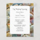 Pequenos programas de cerimônia de casamento na praia. Conchas bonito de praia cobrir a borda e toda a parte de trás deste modelo fácil de usar. Adicione seu próprio texto para um casamento perto do mar.