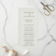 Avise aos seus hóspedes o que esperar em seu dia especial com este programa de casamento simples com seus detalhes sobre um fundo bege claro. Além de informar seus convidados sobre a ordem do serviço e quem está na festa de casamento, esses programas de casamento fazem um souvenir excelente para um casamento moderno.