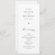 Este elegante e simples programa de casamento de alta altura apresenta uma design limpa e moderna com roteiro de caligrafia romântico. A frente delineia lindamente a ordem da cerimônia, enquanto a parte de trás destaca a festa de casamento e inclui um obrigado sincero que você envia. Perfeito para casais que buscam um toque refinado e eterno para seu dia especial, este programa combina simplicidade e elegância sem falhas.