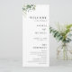 Informe seus convidados sobre o programa de casamento com este elegante cartão de programa, com a aquarela eucalipto floral e seu texto personalizado. Adicione facilmente seus próprios detalhes clicando na opção "personalizar".