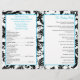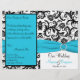 Este programa de casamentos tema damasco preto e branco tem uma fita azul-aqua IMPRESSA e broche de joia de diamante IMPRESSO que seria perfeito para um casamento de aqua e temas negros. Se precisar de assistência para obter informações sobre o ajustado ou para alinhar corretamente, envie um e-mail para niteowlstudio@gmail.com. Seu documento será impressão como aparece no monitor. ELE NÃO será editado por erros de digitação ou alinhamento, etc., pela Zazzle. ****POR FAVOR, OBSERVE que o papel de mais alto é um estoque de cartão e não se dobra bem.