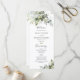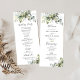 Programa Greenery Wedding. Este convite de casamento na moda e elegante apresenta um lindo verde floral de cor aquosa, pintado manualmente, eucalipto floral. Localizar itens correspondentes na Coleção de Verduras Fluviais Eucalyptus Eucalyptus.
