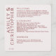 Programa de casamento moderno e avançado com um ponto focal sobre os nomes dos casais em uma elegante fonte minimalista. Design focado em linhas limpas, tipografia minimalista e uma paleta colorida coordenando com a maioria das coleções de artigos de casamento. ❀ ❀ disponível em uma seleção curada de cores de fundo modernas. ❀ ❀ totalmente personalizável e facilmente personalizável. Entretanto, por favor, entre em contato para obter assistência na personalização ou personalização para ajustado de seus desejos. Ou, para obter ajuda para criar produtos relacionados para criar sua suíte perfeita de papelaria de casamento. Estamos aqui para ajudar e queremos criar a sua papelaria perfeita.