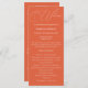 Um belo e rústico programa de casamento para seu dia especial. Apresentando um fundo cor de laranja quente e queimado e uma elegante e fluente escrita, este programa captura a atmosfera serena e romântica de um pôr do sol em Verona. É a maneira perfeita de guiar seus convidados através de sua cerimônia, das palavras de boas-vindas às apresentações da festa de casamento e um obrigado especial que você nota do casal feliz. Personalize com seus nomes, data e detalhes da cerimônia para torná-la verdadeiramente sua.