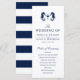 Adicione seus detalhes para criar um cartão de programa de casamento único e clássico, mas moderno, em estilo náutico. Este design apresenta uma ilustração náutica vintage de cavalo de mar seguida dos seus detalhes por baixo. No verso há uma série de faixas marinhos e brancas para completar a aparência. Todos os elementos deste item são ajustáveis utilizando a função de personalização. Aproveite criar e fazer-o seu.