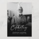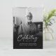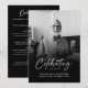 Este cartão de serviço memorial é projetado para homenagear e celebrar a vida de um ente querido com calor e dignidade. A frente apresenta uma fotografia sincera, capturando um momento alegre, com as palavras "Celebrando a Vida de" em uma fonte elegante, seguida pelo nome do seu ente querido e as datas de vida em uma tipografia moderna e limpa. A imagem, combinada com a mensagem comemorativa, estabelece um tom positivo para lembrar a vida do indivíduo. A parte de trás do cartão apresenta uma "Ordem de Serviço" em branco sobre um fundo preto elegante para facilitar a leitura. Esta seção inclui sugestões para estruturar o serviço, desde a recepção dos presentes até a oração fúnebre, atividades comemorativas e pensamentos finais, tudo projetado para guiar o evento de uma maneira que reflita o espírito da pessoa que está sendo lembrada. Este cartão é uma maneira bonita de comemorar uma vida, oferecendo uma homenagem respeitosa e edificante.