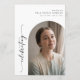 Honre o seu amado com este elegante programa funerário em forma de arco desenhado para uma bela celebração da vida. O roteiro moderno e o layout minimalista oferecem um toque refinado e sincero, com fotos, nome e datas personalizados. O verso proporciona espaço para uma ordem de serviço ou um tributo significativo. Um design eterno gracioso que é fácil de personalizar para qualquer memorial ou serviço funerário.