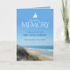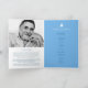 Celebração funerária de seu programa de homenagem vitalícia dobrou-se com um gráfico de pomba branca voador pacífico e um céu azul e praia com dunas de areia e sua própria dentro de fotografia. Personalize com seu próprio texto fotoobituário, ordem de serviço e reconhecimentos. Fotografia de praia original e design por Sarah Trett para www.mylittleeden.com
