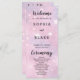 Apresentando nosso Programa Noturno Místico, um complemento cativante e encantador para o seu casamento. Este belo design apresenta um pano de fundo de céu bonito, cor-de-rosa e roxo, adornada com delicadas estrelas cor-de-rosa e brancas, criando uma ambição mística e celestial que expele romance e charme. No cobrir frontal, o texto é cuidadosamente apresentado em preto clássico, com os nomes dos casais, data de casamento e local com elegância subestimada. A ordem de cerimônia cuidadosamente organizada é meticulosamente detalhada, garantindo que seus hóspedes possam seguir cada momento do seu dia especial sem problemas. Adicionando um toque de encanto ao programa, as palavras "Bem-vindo", "Cerimônia" e "Festa de casamento" são delicadamente trabalhadas em uma letra decorativa. Esses detalhes do ornamentado infundem o programa com um sentido de magia e celebração, lindamente contrastando com a simplicidade da fonte do bloco. Essa mistura harmoniosa de estilos capta a essência da modernidade e do eterno. No cobrir de trás, seus estimados membros da festa de casamento são comemorados, seus papéis destacados de forma a complementar o tema celeste. Cada detalhe é meticulosamente projetado, criando um programa de casamento coeso e visualmente atraente que reflete seu estilo único e sua história de amor. Celebre a sua história de amor com o nosso Programa de Casamento Noturno Místico, uma escolha sofisticada que promete melhorar a beleza da sua cerimônia. Que o design encantador e a meticulosa atenção aos detalhes façam da celebração do seu casamento uma experiência inesquecível, deixando todos cativos pela elegância celestial e romance do seu sindicato.