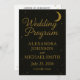 Celebre seu dia de casamento com este elegante programa de casamento celestial preto e ouro, com um elegante design estrelado de noite com sotaque de lua e sotaques de constelação. As páginas de dentro fornecem um layout claro da sua ordem de cerimônia, festa de casamento, em homenagem à memória amorosa, e um obrigado sincero que você nota do casal. Perfeito para casamentos celestes, celebrações de gravata negra ou cerimônias noturnas, este programa personalizável coordena-se lindamente com convites correspondentes, Salve-as-Datas, cartões RSVP, menus, cartões de escolta e notas de obrigado-você. Impresso a 350 DPI em estoque de cartão premium para um acabamento luxuoso.