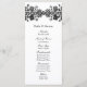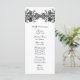Este cartão permite descrever sua festa de casamento de um lado, e seu programa de cerimônia de casamento do outro. Personalize se você precisar adicionar linhas extras de texto. Apresentando folhas e vinha de gemido preto em forma de nó celta contra fundo branco.