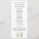 Este elegante programa de cerimônia de casamento no estilo rústico apresenta um belo arranjo de buquê floral de flores negras, incluindo rosas pintados, flores ranunculus, e folhas em tons de rosa-pincel, branco, creme, ouro, verde. Perfeito para um evento de primavera ou verão. Personalize o texto verde folha na moda e cinza escura em ambos os lados do cartão com sua cerimônia personalizada, festa de casamento e obrigado sua mensagem.