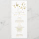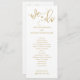 Programas de Casamento Moderno - Caligrafia de Salto (Dourado plano): Este programa de casamento alto apresenta dois lados. A frente tem seus nomes, data do casamento e ordem da cerimônia. As costas têm bastante espaço para uma festa de casamento de cheio. A caligrafia moderna que flui define o tom para um evento divertido e casual. Mude a cor do design e do texto para o que quiser! Basta escolher uma nova cor de preenchimento. Você pode até mesmo mudar toda a sua cor de fundo e tornar o texto branco para um efeito exclusivo.