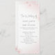 Este cartão de cerimônia sofisticado apresenta ilustrações delicadas de flor de cereja em rosa pincel suave, graciosamente moldando um fundo branco limpo. O design minimalista usa fontes elegantes de serif e script, apresentando sua ordem de cerimônia e detalhes de festa de casamento em um layout claro e organizado. Os sotaques florais embaçados acrescentam um toque gentil e romântico, perfeito para comemorações de primavera, eventos de jardim ou elegantes cerimônias ao ar livre. Uma mensagem de gratidão sincera no final oferece uma nota pessoal aos seus convidados.