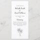 Programa de Cerimônia de Casamento de Destino, com palmeiras tropicais design. Configurado em um simples fundo branco, você personaliza com suas próprias informações. Um tema divertido na praia para planejar seu dia especial.