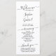 O programa de casamento Mínimo Elegante é perfeito para um casamento mínimo moderno. Todas as informações da cerimônia de casamento e o nome da festa de casamento listados neste programa. Design com tipografia/caligrafia manchada preta e cursiva, em fundo branco, com um simples aspecto limpo. Incluindo o nome da noiva e do noivo, a data e a localização, o obrigado da mensagem, a ordem de serviço, a festa de casamento e um memorial "em memória amorosa" opcional. Fácil personalizá-lo.