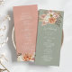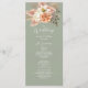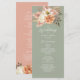 Guie seus convidados através do seu dia especial com este elegante programa de casamento rústico com tons suaves de verde salva e pêssego. Decorado com flores boho pintadas à mão, este layout de dupla face inclui os detalhes da sua cerimônia e festa de casamento. Um par perfeito para casamentos ao ar livre, no jardim ou românticos de outono.