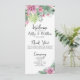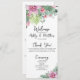 Programa de Cerimônia Elegante Tropical de Palm Chic Floral. Com sotaques botânicos cor-de-rosa e verde contrastados por letras pretas e brancas. Um design tropical que abraça a beleza tranquila da natureza misturada com uma aresta lúdica que certamente o ajudará a se divertir. Uma mistura de folhas tropicais verdes calmantes, incluindo folhas de bananeira, palmas, folhas de monstera e plantas de princesa rosa, ao lado de flores de orquídeas roxas cor-de-roxo e flores de proteína, interligadas com várias outras folhagens. Reforçado por uma moderna fonte tipográfica manuscrita ou escrita, este impressão encantador emite charme e sofisticação. Esta design versátil traz uma sensação de paraíso tropical para qualquer cenário ou ocasião especial, fazer-a perfeita para um casamento de destino, ou apenas quando você quer adicionar uma chama tropical.