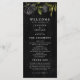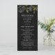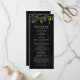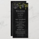 Programa de casamento gótico com ilustração de rosas pretas. Todas as informações da cerimônia de casamento e o nome da festa de casamento listados neste programa. Perfeito para um casamento de halloween.