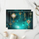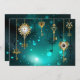 Chaves Douradas e antigas com engrenagens e marcadores penduram em correntes douradas sobre fundo verde luminoso.
