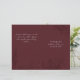 Um programa de casamento costume elegante feito em um rico burgundy, com adoráveis flores de burgundy. O texto das cinzas leves, em ambos os lados do programa, está pronto para personalizar com todas as suas informações de casamento. Dobrar ao meio para formar o programa. Os produtos de casamento correspondentes estão disponíveis.