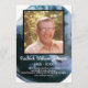 Personalize um programa funerário com a foto do ente querido morto. O fundo apresenta uma foto de uma rocha branca e azul polida. A citação, "A vida é eterna, e o amor é imortal, e a morte é apenas um horizonte; e um horizonte não é nada além do limite de nossa visão", de Rossiter Worthington Raymond está na frente abaixo da foto, nome e anos de vida. Na parte de trás está espaço para a ordem dos serviços para o funeral, a lista de palestrantes, e outra citação, "Como um pássaro cantando na chuva, que memórias agradáveis sobrevivem no tempo da tristeza", de Robert Louis Stevenson. A foto da rocha azul e branca é colocada no verso com uma pequena foto no centro da informação do programa. Fotos e texto são configurados para serem personalizados com suas próprias fotos e texto. Se precisar de ajuda para personalizar, entre em contato comigo.