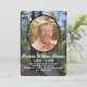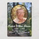 Personalize um programa de funeral com a foto do falecido amado. O fundo apresenta uma floresta pacífica de pinheiros. A citação, "A vida é eterna, e o amor é imortal, e a morte é apenas um horizonte; e um horizonte não é nada além do limite de nossa visão", de Rossiter Worthington Raymond está na frente abaixo da foto, nome e anos de vida. Na parte de trás está espaço para a ordem dos serviços para o funeral, a lista de palestrantes, e outra citação, "Como um pássaro cantando na chuva, que memórias agradáveis sobrevivem no tempo da tristeza", de Robert Louis Stevenson. Fotos e texto são configurados para serem personalizados com suas próprias fotos e texto. Se precisar de ajuda para personalizar, entre em contato comigo em jen@jenaleefamilystorykeeper.com