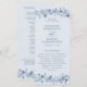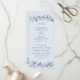This elegant wedding program card features soft dusty blue botanical foliage arranged in a refined frame, paired with classic typography for a timeless and sophisticated presentation. Designed to display ceremony order, wedding party details, and meaningful moments, this card brings both beauty and clarity to your celebration. Inspired by vintage floral artwork and nature-influenced design, it is ideal for outdoor ceremonies, classic weddings, and luxury winter or garden celebrations, offering an elevated and cohesive stationery detail.