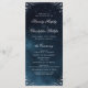 Este elegante cartão do programa de casamento mostra o canto florescente tradicional e o roteiro clássico no fundo azul-d-água do marinho, excelente para o casamento clássico, casamento vintage. Ver todas as peças correspondentes na coleção