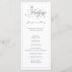 Com elegância clássica, este programa de casamento usa uma bela escrita floresce a caligrafia destacando a frente do programa. Uma simples borda de cinza prateada enquadra seu texto com o estilo atual. Os textos restantes na frente e atrás são todos configurados em um modelo fácil de usar onde você pode editar com seu programa de casamento e seus participantes de festa de casamento. Você pode adicionar ou excluir linhas de texto, redimensionar ou alterar o estilo da fonte, bem como mover o texto para atender às suas necessidades. Para simplificar a personalização deste programa, primeiro edite o texto mostrado no modelo de design com suas entradas. Em seguida, escolha "personalizar ainda mais" para mover as coisas e reposicionar o texto conforme necessário para se adequar ao layout de texto desejado.