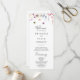 Este clássico e colorido programa de casamento floral é perfeito para um casamento rústico. A design apresenta flores silvestres brancas, amarelas, roxas e brancas com folhagem em fundo de rosa e aquarela verde.
