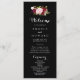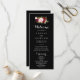 Este clássico programa de casamento preto tropical é perfeito para um casamento rústico. O design de marsala artístico bordo apresenta rosas de aquarela, verdes, cor-de-rosa, burgundy e blush, combinados com verde, bem arrumados num buquê de flores gracioso e radiante.