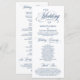 Elegante Classy Wedding Ceremony Program em cartão de 4 x 9 polegadas (longo), no tema azul Marinho. Ele foi projetado com sotaque de rolagem que pode ser personalizado com texto personalizado/ personalizado para seu partido noiva, detalhes da cerimônia, notas memoriais e mensagem de obrigado.