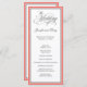Com elegância clássica, este programa de casamento usa uma bela escrita floresce a caligrafia destacando a frente do programa. Um simples coral e borda preta enquadra seu texto com o estilo contemporâneo. Os textos restantes na frente e atrás são todos configurados em um modelo fácil de usar onde você pode editar com seu programa de casamento e seus participantes de festa de casamento. Você pode adicionar ou excluir linhas de texto, redimensionar ou alterar o estilo da fonte, bem como mover o texto para atender às suas necessidades. Para simplificar a personalização deste programa, primeiro edite o texto mostrado no modelo de design com suas entradas. Em seguida, escolha "personalizar ainda mais" para mover as coisas e reposicionar o texto conforme necessário para se adequar ao layout de texto desejado.