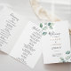 Este clássico programa formal de casamento de folhas verdes dobradas é perfeito para um casamento rústico. A design apresenta folhas verdes desenhadas à mão com aquarelas, inspirando beleza natural. Inclua uma citação ou mensagem curta, ordem de serviço, festa de casamento e obrigado da mensagem.