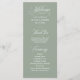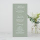 Estes programas simples e elegantes de boas-vindas ao casamento verde sábio apresentam o estilo clássico do velho mundo com caligrafia branca romântica. Ponha o tom para o seu luxo e sofisticado casamento italiano inspirado nesta design minimalista e elegante. Adicione facilmente a sua ordem de cerimônia, uma mensagem especial de obrigados aos seus convidados, e os nomes da sua festa de casamento.