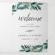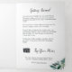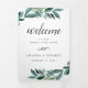 Planejar um casamento de destino, ou esperar muitos convidados fora da cidade? Compartilhe uma mensagem de boas-vindas para seus convidados de casamento, bem como um itinerário ou agenda dos eventos do fim de semana, com esta design simples e elegante com folhagem botânica verde-aquática. Personalize o dentro com uma mensagem pessoal de boas-vindas e um calendário detalhado de eventos ou o itinerário do fim de semana do casamento. Perfeito por incluir nas bolsas de boas-vindas do hotel ou entregar aos quartos dos seus convidados.