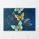 Composição de borboletas voadoras, joias, douradas e escuras em fundo de joias texturizadas. Borboleta ouro.