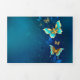 Programa Com Borda Tripla Borboletas de ouro em um fundo azul