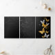 Borboletas Douradas, joias e brancas sobre fundo preto. Borboleta ouro.