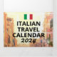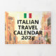 Um calendário para 2024 com feriados italianos. Este calendário é pequeno, pelo que é fácil carregar à mão. Perfeito para viajantes, nômadas digitais e visitantes de Itália.