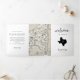 Planejar um casamento de destino, ou esperar muitos convidados fora da cidade? Compartilhe uma mensagem de boas-vindas para seus convidados do Texas, bem como um itinerário ou agenda dos eventos do fim de semana. Front apresenta um mapa silhueta do estado do Texas com um dentro de coração. (Você pode personalizar a cor do estado e a posição do coração dentro da ferramenta design!) Personalize o dentro com uma mensagem pessoal de boas-vindas e um cronograma detalhado de eventos ou o itinerário do fim de semana do casamento. Perfeito por incluir nas bolsas de boas-vindas do hotel ou entregar aos quartos dos seus convidados.