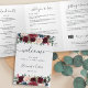 Planejando um casamento no destino, ou esperando muitos convidados de fora da cidade? Compartilhe uma mensagem de boas-vindas para seus convidados de casamento, bem como um itinerário ou cronograma dos eventos do fim de semana, com este lindo design floral. Personalize o interior com uma mensagem de boas-vindas pessoal e um cronograma detalhado de eventos ou itinerário do fim de semana de casamento. Perfeito para incluir em sacolas de boas-vindas de hotel ou entregar nos quartos de seus convidados, este cartão trifold é projetado para combinar com nossa coleção de casamento Radiant Bloom, apresentando vibrantes flores em tons de joia em tons de água em burgundy e azul-marinho.