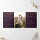 Programa Tri-Fold de Casamento Fotográfico de Confetti Dourado Roxo com fotos à frente e atrás