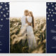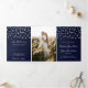 Marinho Blue Silver Glitter Confetti Foto do Programa Tri-Fold de Casamento com fotos frontais e traseiras