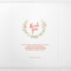 Arte floral da coroa floral de Natal com os elementos de bagas vermelhas, conchas, cones de pínus, flores vermelhas e ramos. Estrela vermelha, verde e amarela, desenho floral festivo e lavagem clara de água, programa de casamento no inverno de Natal. Personalize este programa de casamentos no inverno com suas próprias fotos, nomes, data, detalhes do casamento e obrigado você. © Impressão a aquarela original e design por Sarah Trett para www.mylittleedenweddings.com