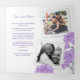Desenho gráfico botânico de flores roxas do crisântemo com folhas de cinza verde em um programa personalizado de casamento quadrado. Personalize com o nome de sua própria noiva e noiva e a data do casamento, cerimônia de casamento, história de amor, festa de casamento e obrigado, além de três de suas próprias fotos, um centro de página de cheio e duas na sua página de história de casamento. Perfeito para um casamento roxo. Design apresenta um Impressão de desenho gráfico de flores roxas do crisântemo por Sarah Trett para www.mylittleedenweddings.com somente disponível no zazzle.